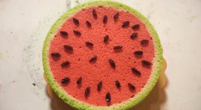 Món bánh chiffon tạo hình dưa hấu này không chỉ trông rất bắt mắt, mà nó còn có mùi vị thơm ngon rất hấp dẫn.