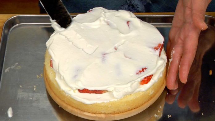 Trang trí bánh là một bước khá quan trọng để tạo nên được một chiếc bánh kem dâu tây hoàn hảo.