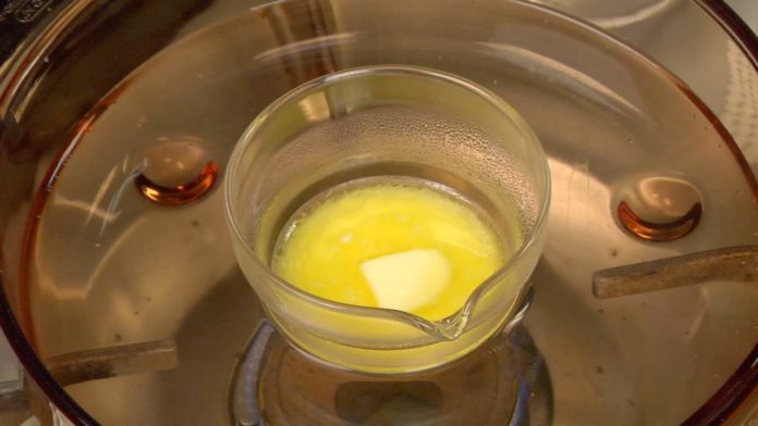 Bước 4: Tiếp đó bạn tiến hành hấp cách thủy sữa và bơ nhạt.