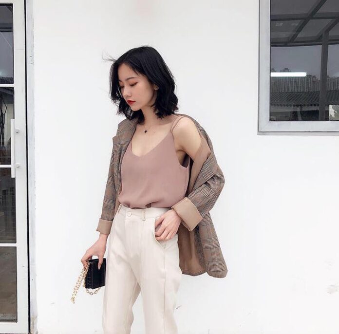 Bên cạnh những chiếc áo blazer trơn có phần hơi đơn điệu thì áo blazer kẻ caro hay kẻ sọc luôn là lựa chọn rất thú vị mà bất kì cô nàng nào cũng nên thử. Nếu làm việc tại môi trường không quá khắt khe về trang phục thì bạn cũng đừng ngại thử một set đồ ton-sur-ton áo blazer cùng quần short và dĩ nhiên không thể thiếu một chiếc áo hai dây lụa bên trong.