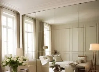 Bức tường gắn nhiều gương không chỉ tạo hiệu ứng thẩm mỹ mà còn khiến không gian rộng và sáng hơn nhờ khả năng phản chiếu ánh sáng. Đây là giải pháp lý tưởng cho phòng nhỏ hoặc thiếu sáng.