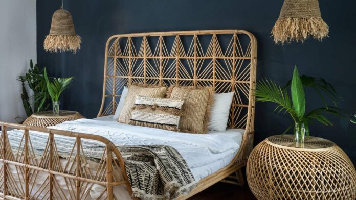 - Phong cách Rustic – Vintage: Gỗ thô, đá tự nhiên, mây tre đan.