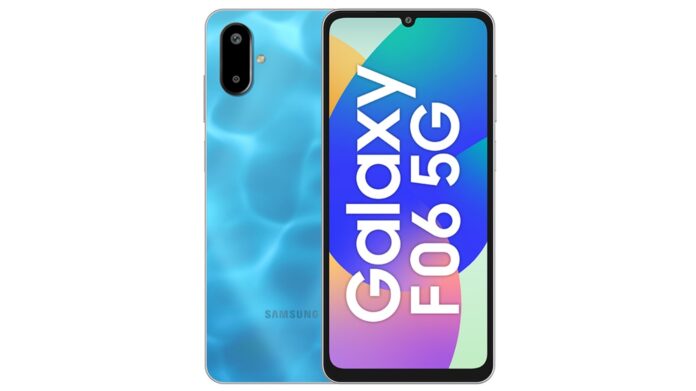 Galaxy F06 là mẫu điện thoại giá rẻ với màn hình HD+ kích thước 6,74 inch, chip MediaTek Dimensity 6300, camera gồm ống kính chính 50MP với ống kính phụ 2MP và camera trước 8MP. Phiên bản RAM 4GB bộ nhớ 128GB có giá khởi điểm là 9999 Rupee (khoảng 115 USD).
