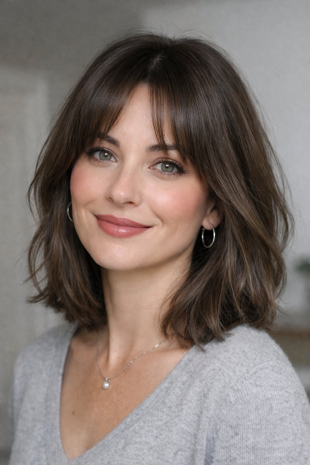 Kiểu tóc cắt một độ dài (không tỉa quá nhiều lớp) giúp làm nổi bật độ dày và độ bóng của tóc. Khi kết hợp thêm những lớp mỏng ôm sát khuôn mặt, tổng thể sẽ trở nên mềm mại hơn mà không làm mất đi sự gọn gàng.