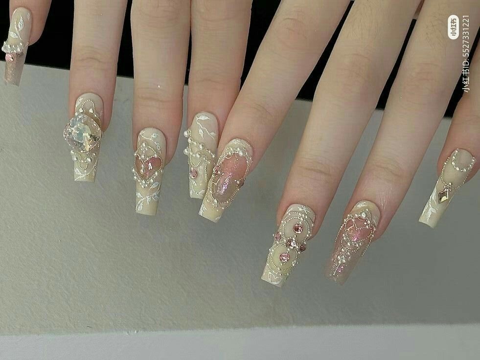 Điểm mấu chốt của phong cách này là sự tương phản giữa vẻ tĩnh lặng của màu trắng và sự lấp lánh cực độ của đá. Thông thường, thợ nail sẽ chọn một hoặc hai ngón chủ đạo để đính đá cầu kỳ, trong khi các ngón còn lại được tiết chế để tổng thể không bị nặng nề. Đây là mẫu nail “quyền lực” nhất, cực kỳ phù hợp cho các quý cô trong những sự kiện trọng đại hoặc lễ cưới.