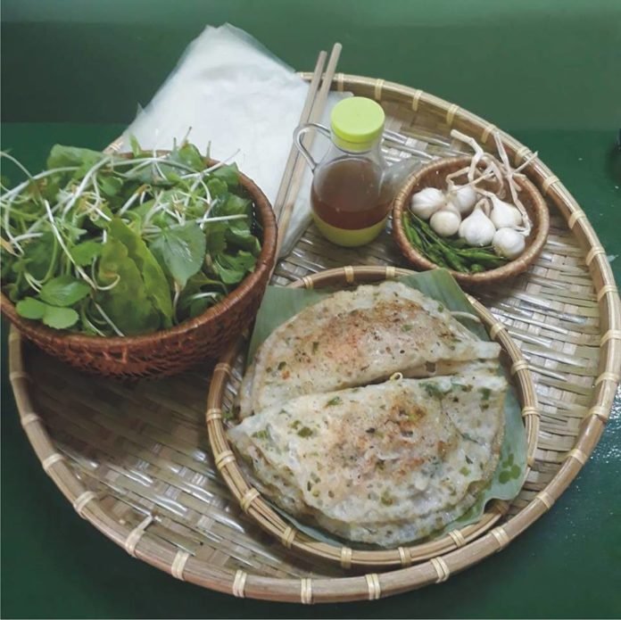 Tùy vào cách làm mà có thể cho thêm bột nghệ cho có màu sắc, nhưng đặc trưng bánh xèo ở đây vẫn là màu sắc nguyên thủy của bột gạo xay nhuyễn. Bánh xèo có nhiều nhân như tôm, thịt nhưng ngon nhất vẫn là bánh xèo nhân thịt vịt, bánh nhìn đơn giản như chính sự bình dị của người dân nơi đây.