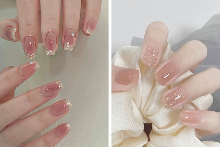 Mẫu nail này mang lại vẻ ngoài lấp lánh mà vẫn giữ được sự tinh tế, không quá phô trương. Nền móng thường là màu nude, hồng hoặc trắng ngọc trai. Đá đính (thường là đá Swarovski, đá Zirconia) có kích thước rất nhỏ, được sắp xếp tinh tế thành các đường viền nhẹ ở chân móng, hoặc tạo thành hình vương miện nhỏ, hoặc rải đều dọc theo đường cong móng.