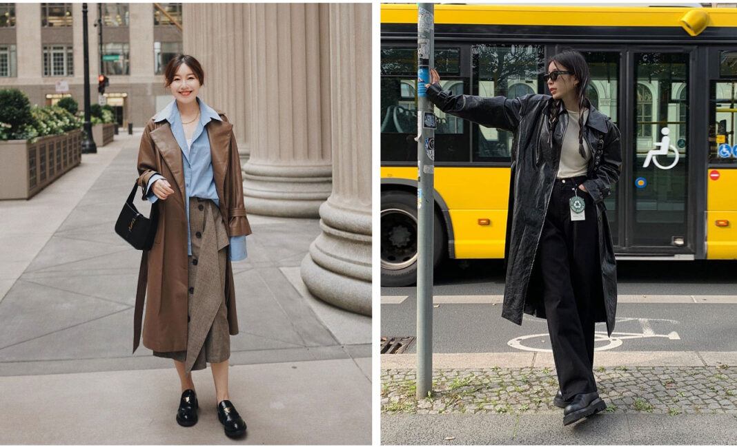 Áo khoác dài làm từ chất liệu da (Leather Trench Coat) mang đến vẻ ngoài mạnh mẽ, bí ẩn và rất thời thượng. Loại áo này thường không cần quá nhiều chi tiết layer bên trong, chỉ cần một chiếc áo len mỏng cổ lọ hoặc áo thun basic. Để tạo sự cân bằng, nên phối cùng quần jean suông hoặc chân váy lụa satin. Tổng thể sẽ là một vẻ ngoài Rock Chic hoặc Matrix-inspired cực kỳ độc đáo và thu hút.