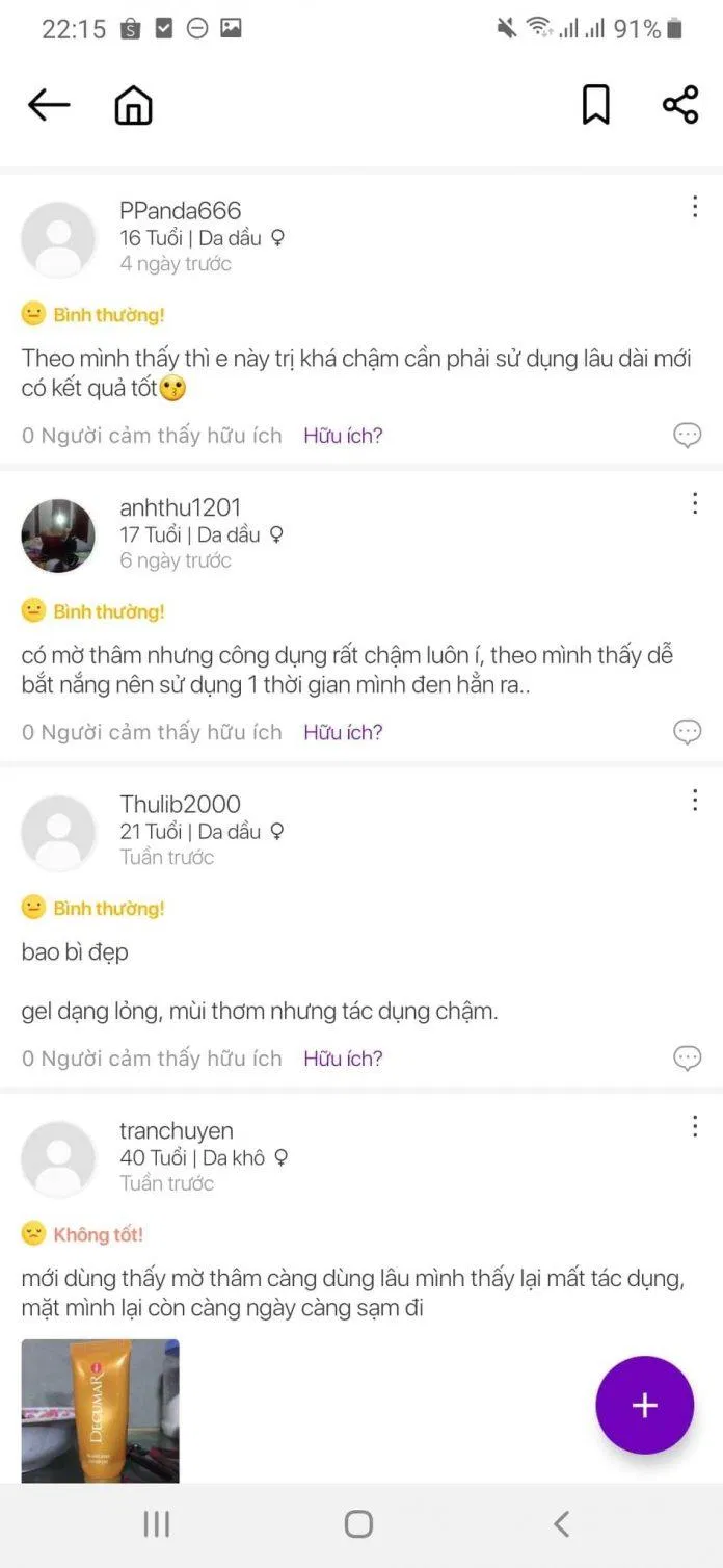 - Đánh giá của khách hàng đã sử dụng gel trị mụn Decumar