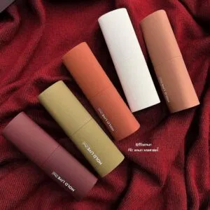 Bộ sưu tập son đến từ Trung Quốc Holdlive Mousse Velvet Lipstick được trau chuốt phần bao bì rất kĩ tạo sự thu hút cho bộ son. Set son 5 thỏi được đặt trong hộp màu xám bạc khá sang, mỗi thỏi son là một màu khác nhau, không giống màu son bên trong nhưng đều là những màu trầm và trendy.