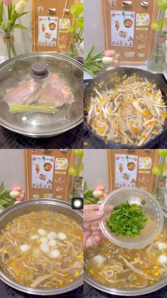 4. Cách nấu món Súp Gà Nấm