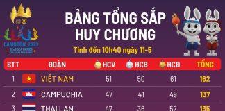 Bảng tổng sắp huy chương SEA Games 32 ngày 11/5: Việt...