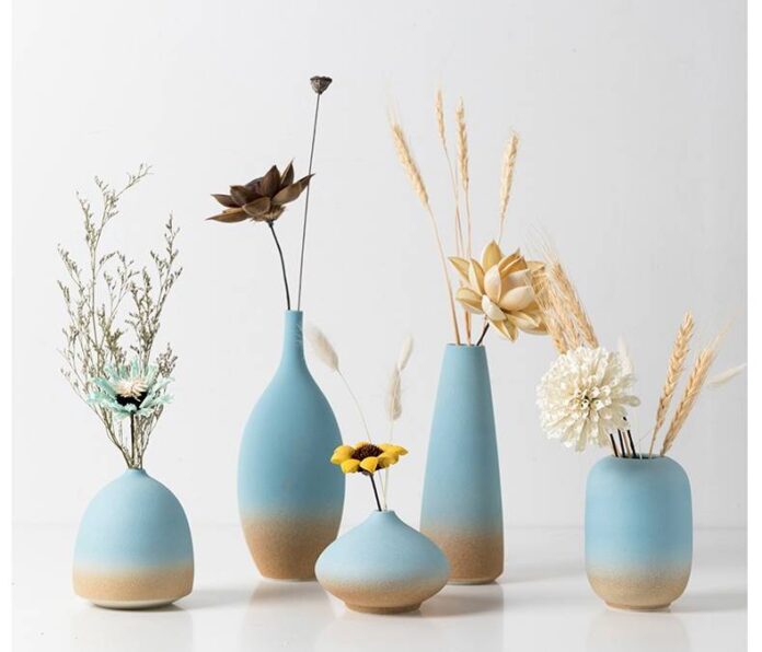 Thay vì đồ sứ bóng loáng, hãy chọn các món gốm thủ công có lớp men mờ, mang tông xanh lam nhạt, xanh bọt biển hoặc xám cát. Bình hoa, đĩa hoặc khay bằng chất liệu này không chỉ làm đẹp không gian mà còn phản ánh vẻ đẹp mộc mạc, sâu sắc của đại dương qua màu sắc và kết cấu.